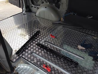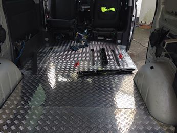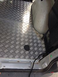 Bodenplatte für Mercedes Vito.Aus 3mm Alu-Riffelblech geschweißt und Plasma geschnitten.